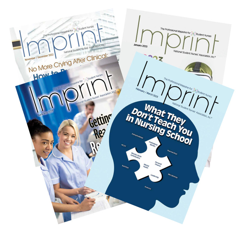 Imprint, NSNA’s official magazine for student nurses and members, highlights news and events regarding NSNA, local and state chapters, and the nursing profession. With articles about various nursing specialties and career planning, it is a great resource for student nurses. Articles written by faculty and nursing students highlight experiences in nursing school, the hospital setting and nursing profession. It also features study tips, crossword puzzles, and more! Read Imprint.